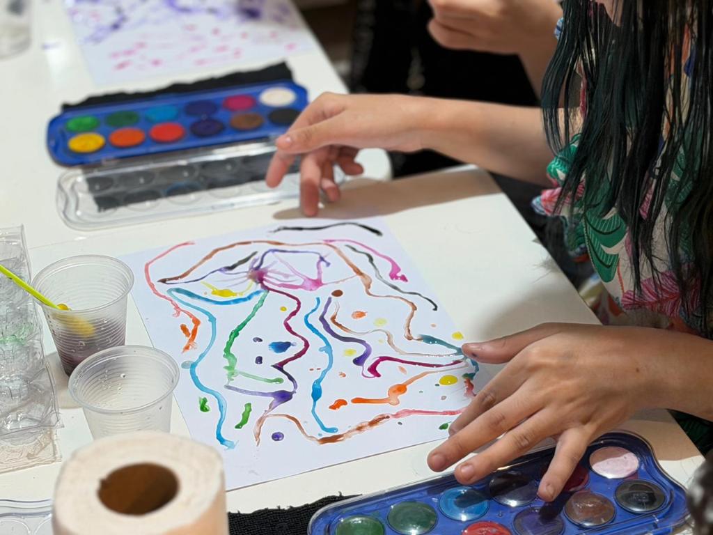 Segundo Beatriz, a oficina foi adaptada com foco na acessibilidade. “Eu já havia executado o ‘Descobrindo a Aquarela’ duas vezes para o público em geral, quando em conversa com a enfermeira Nélida Peaguda, que identificou na aquarela um caminho de expressão e acolhimento por meio da arte, uma possibilidade de atividade artística para os pacientes do CAPS. Com isso, adaptamos a proposta e ampliamos o projeto também para o AMA, estruturando as oficinas com foco na acessibilidade”, explica. Para fortalecer esse processo, contamos com a assessoria pedagógica da médica Paula Gotelip, profissional reconhecida nacionalmente na área.